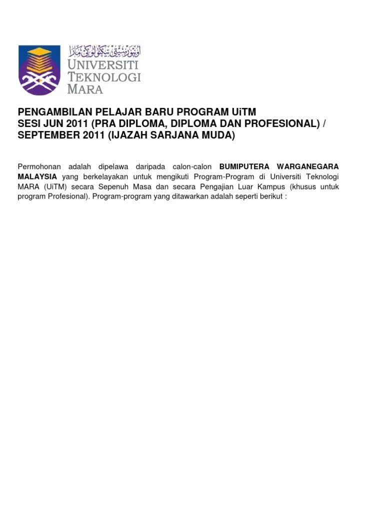 Yuran Pra Diploma Uitm / Kit Permohonan Dan Pendaftaran Pelajar Baharu Iceps Membalik Buku Halaman 1 20 Anyflip